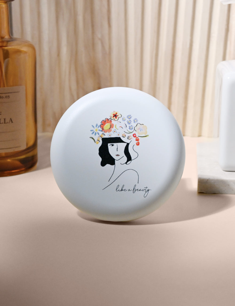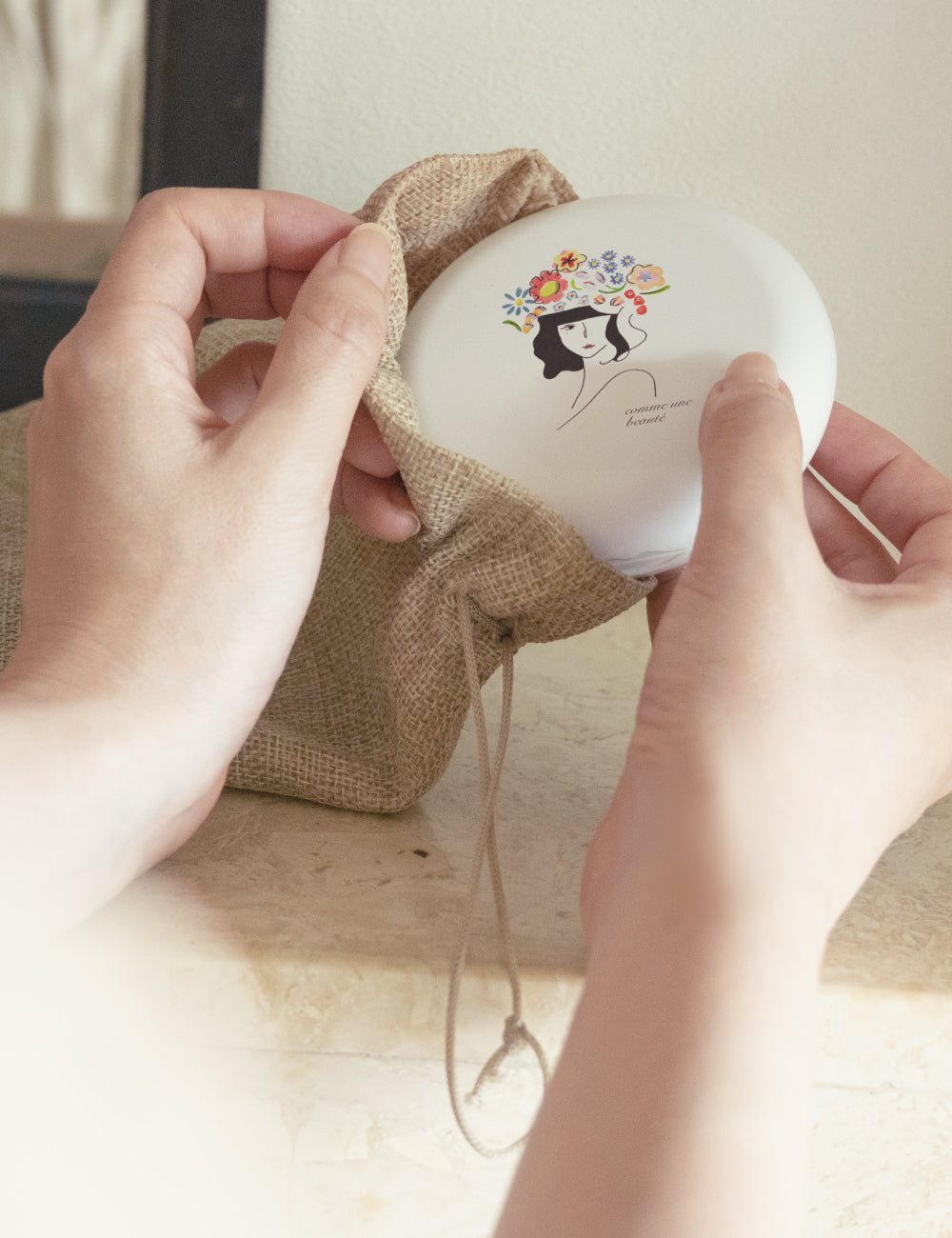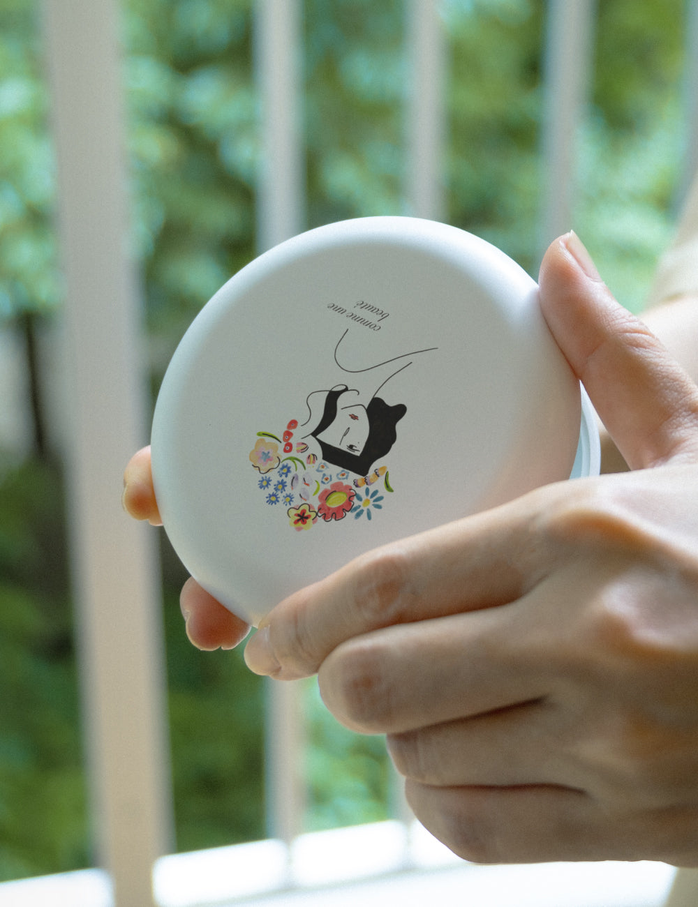 直径8cm 薄さ2cmのコンパクトなサイズ感。ポーチやカバンにすっと収まり、どこへでも一緒に。