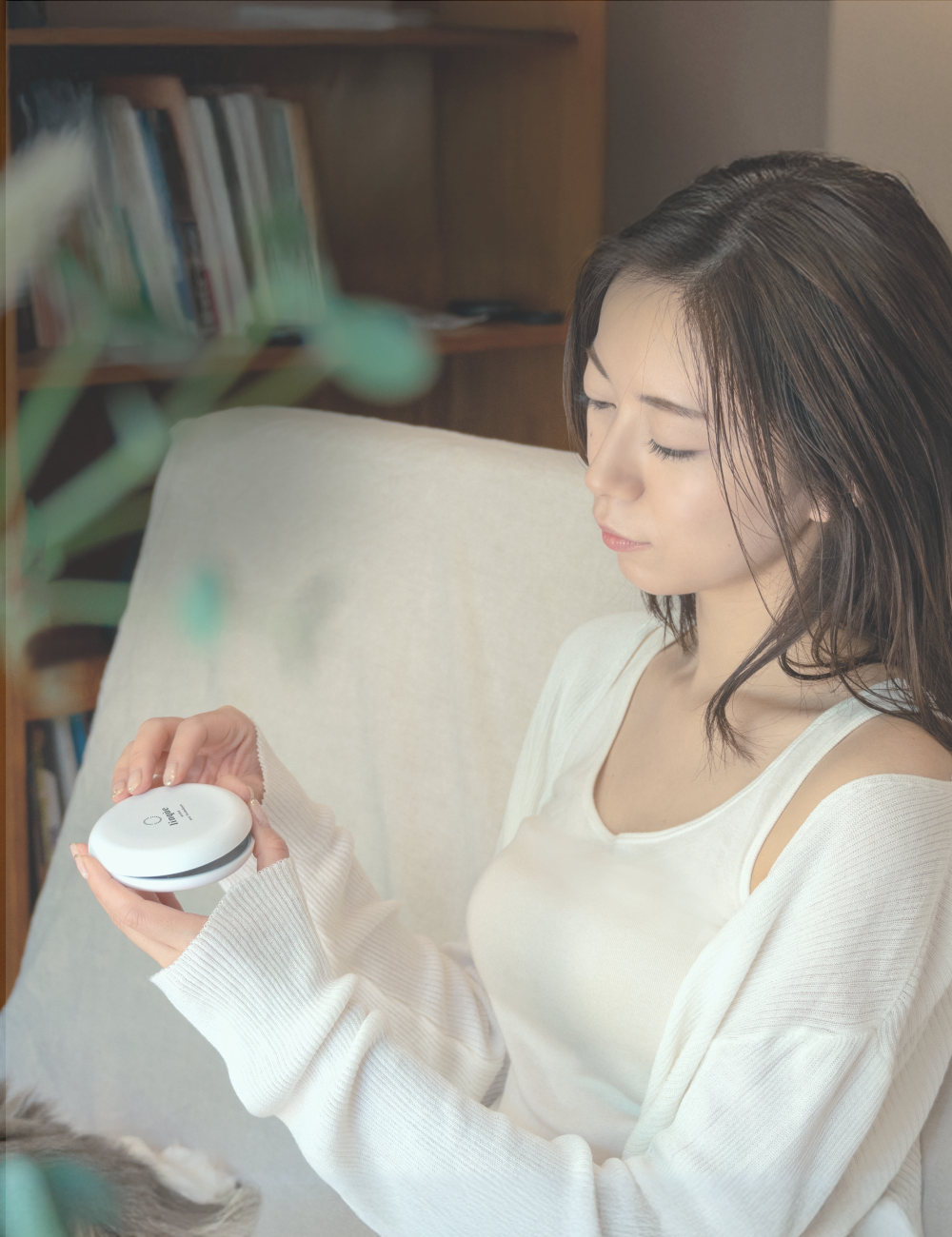 直径8cm 薄さ2cmのコンパクトなサイズ感。ポーチやカバンにすっと収まり、どこへでも一緒に。