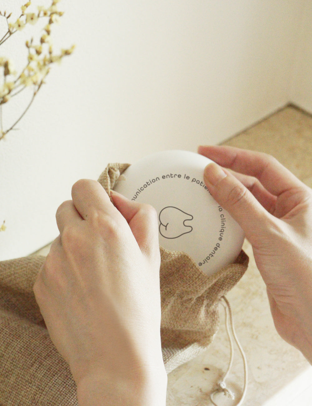 直径8cm 薄さ2cmのコンパクトなサイズ感。ポーチやカバンにすっと収まり、どこへでも一緒に。